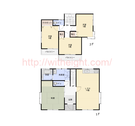 | 間取内容 | LDK14畳 1階和室8畳1室 2階洋室6畳3室 |